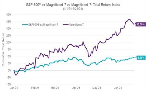 But that’s where this so-called bearish divergence began to kick in. From 5/17 through 6/17, it’s been all about tech as the Mag 7 returned 11.9% while the rest of the S&P 500 was down 0.5%.