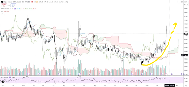 Coming into this year, one of our concerns was that the market was vulnerable to the typical midterm year correction. I have been mentioning this almost every week. As I like to say, “What the market hates most is what it doesn’t know or can’t handicap.” Market declines, even ones as consistent as during Q2 – Q3 of midterm years, require a catalyst. The overwhelming fear is how the conflict could be a catalyst to sustained negativity by flipping otherwise bullish (strong economic) indicators bearish (into a reversal to the negative). An obvious candidate is inflation. The headline CPI, which unlike the Fed’s preferred inflation gauge includes energy prices, has been in a downward trajectory since August 2022. Hence, we consider disinflation as having been one of the primary drivers of the cyclical bull market. The good news for the bulls is that there is plenty of wiggle room for inflation to rise before our key inflation indicator turns bearish. The year/year change in the CPI sits 0.36% points below the six-month average. The CPI has to rise 0.6% points above the six-month average to trigger a bearish signal, leaving room for a short-term oil spike. Since oil tends to be the underbelly of almost all economic manufacturing, it tends to be a very heavily monitored gauge. You will notice in the chart below that oil prices have been on a decline until the beginning of this year and then began a slow and steady rise into this conflict and then spiked, as expected. Hence, the underlying component of many manufactured goods (oil) is exhibiting very inflationary price moves.